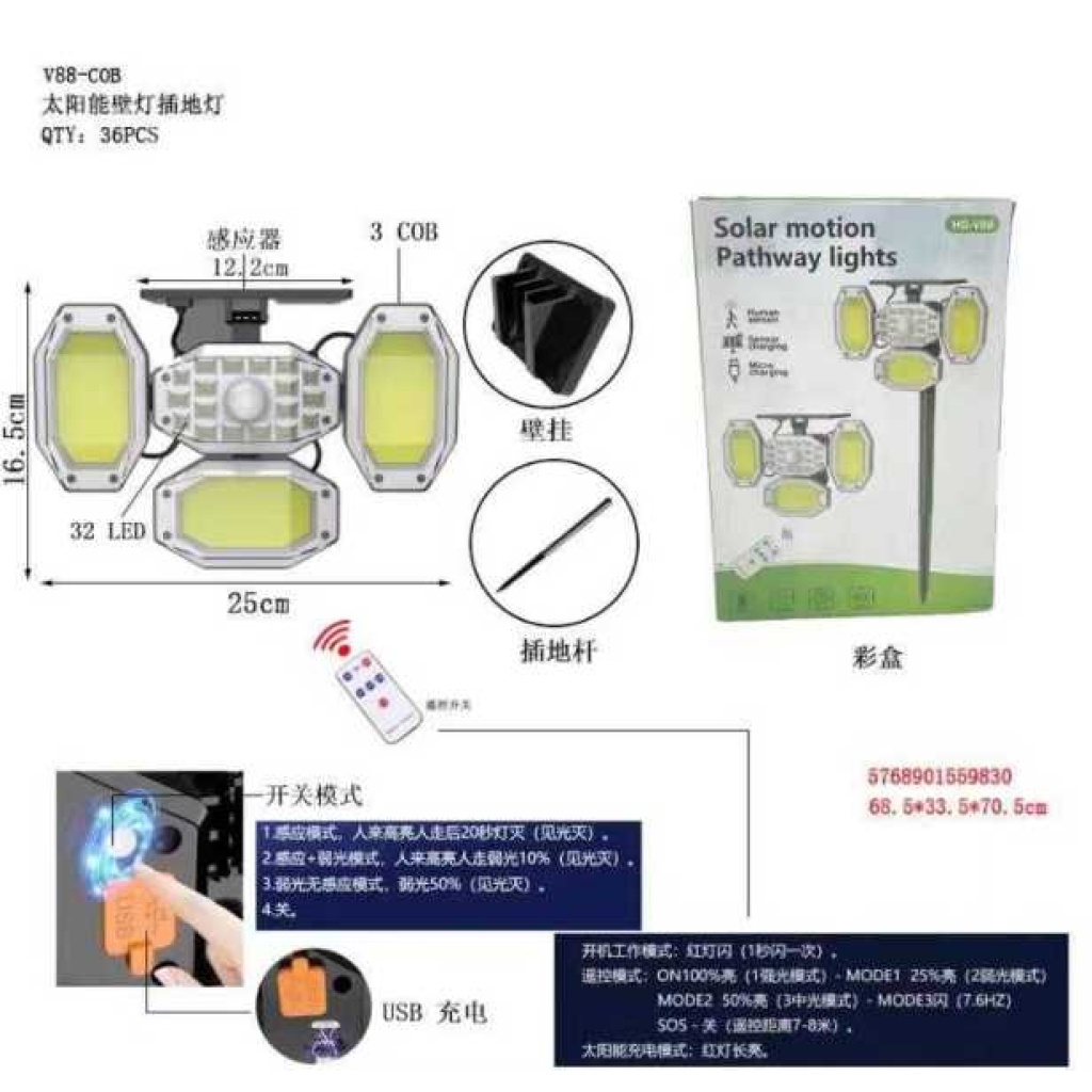 Ηλιακός προβολέας LED με αισθητήρα κίνησης – V88COB – 559830