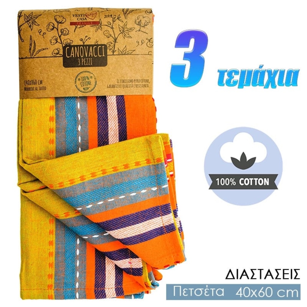 Σετ Βαμβακερές Πετσέτες με Σχέδιο 3τμχ Πορτοκαλί