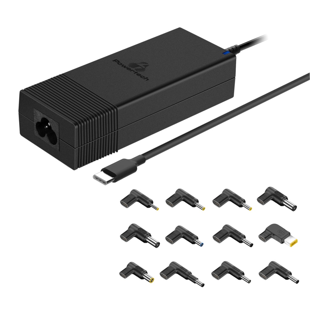 POWERTECH φορτιστής laptop PT-1256 με 12 βύσματα, USB-C PD, 90W, μαύρος