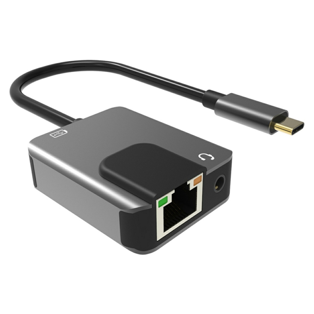 POWERTECH αντάπτορας δικτύου PTH-046, USB-C, 1000Mbps, 65W PD, γκρι