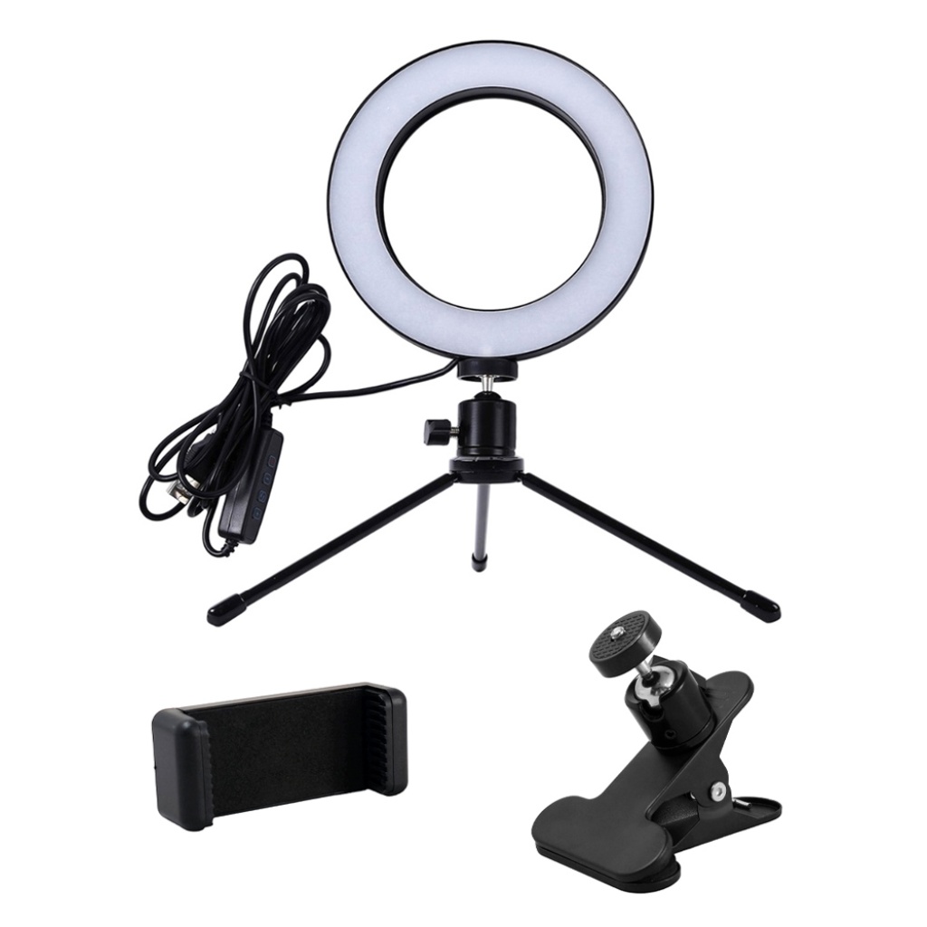 CABLETIME φωτιστικό δαχτυλίδι LED CT-LRL6-PB με μίνι τρίποδα & σφιγκτήρα, βάση smartphone, Φ16cm