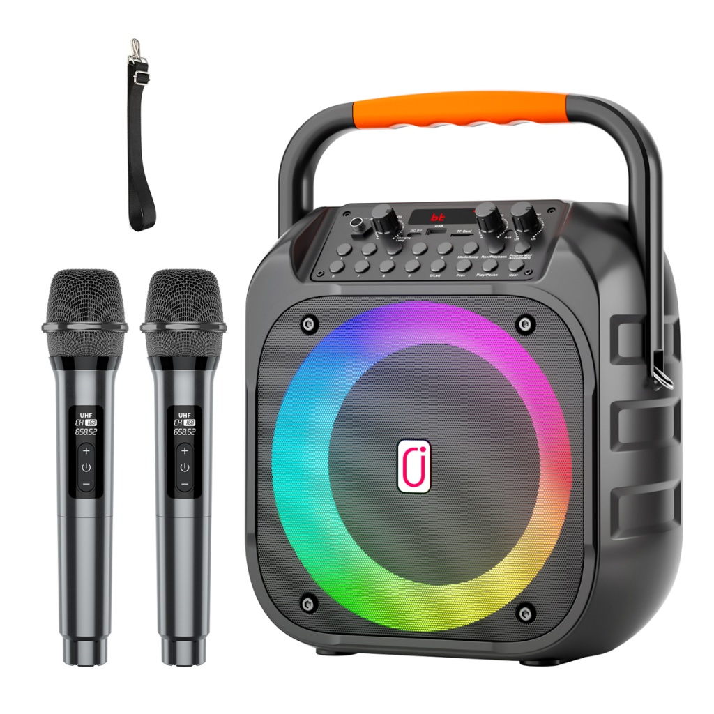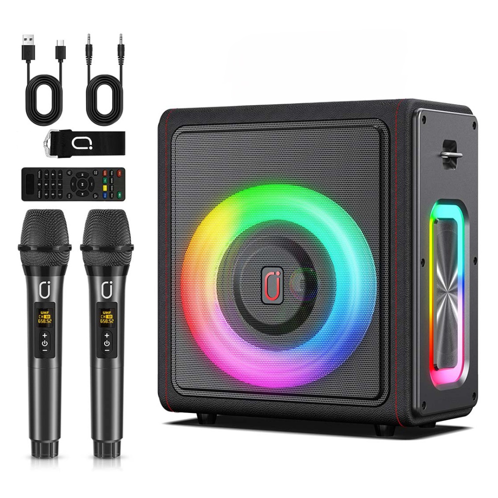 JYX φορητό ηχείο MS75 με 2x μικρόφωνα & ασύρματο χειριστήριο, 15W, 6000mah, RGB φωτισμός, μαύρο
