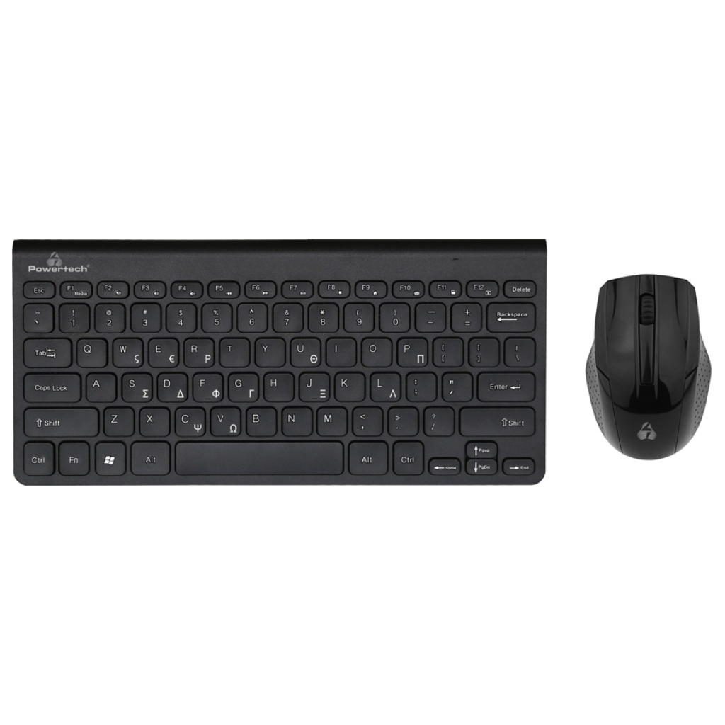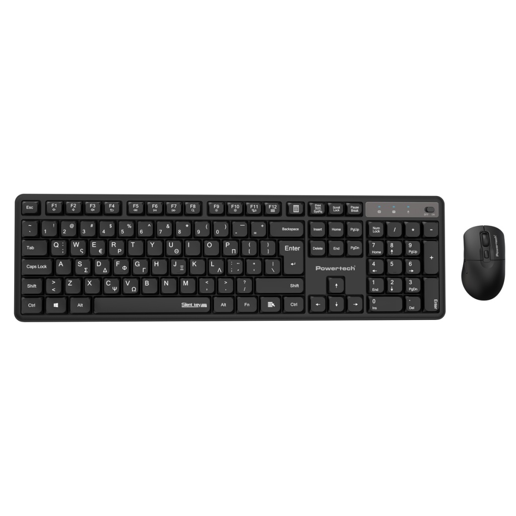 POWERTECH set ασύρματο ποντίκι & πληκτρολόγιο PT-1541, 2.4GHz, αθόρυβο, μαύρο