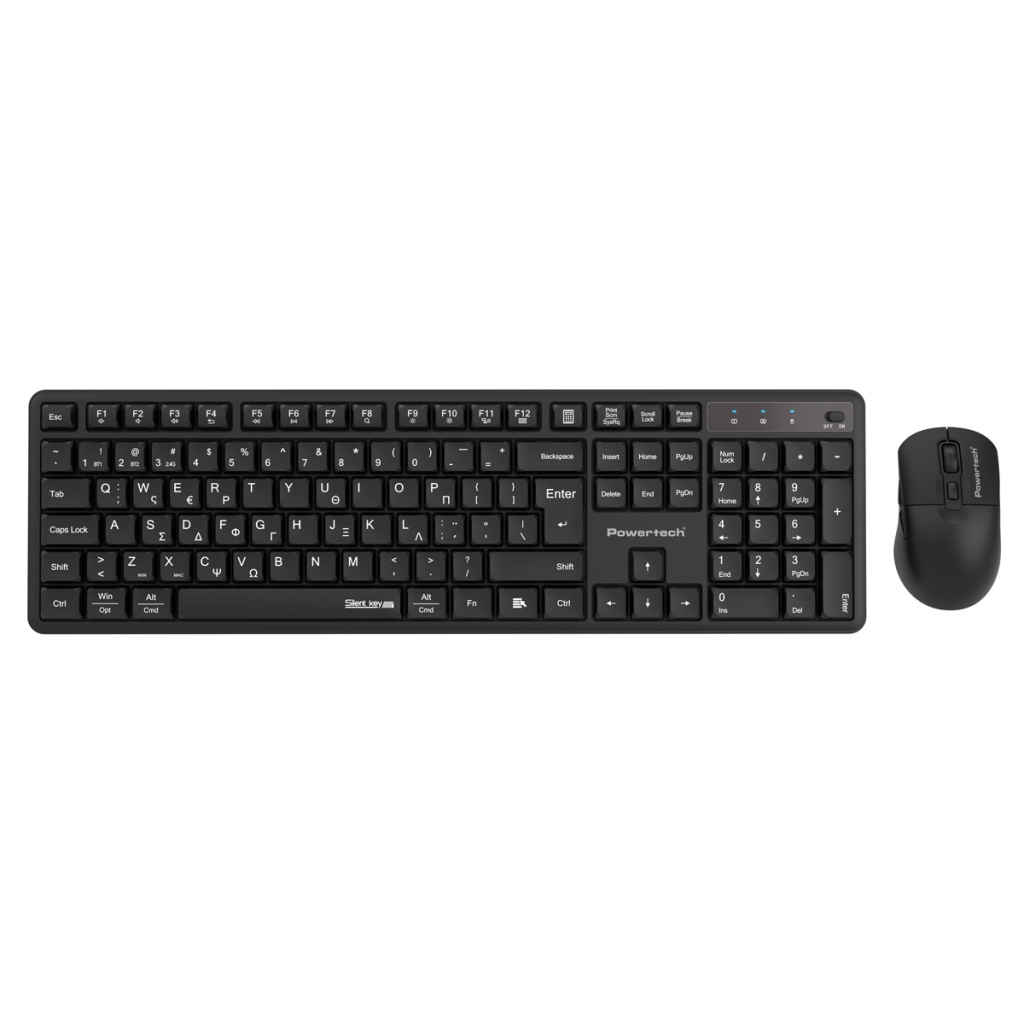 POWERTECH set ασύρματο ποντίκι & πληκτρολόγιο PT-1540, 2.4GHz & Bluetooth, αθόρυβο, μαύρο