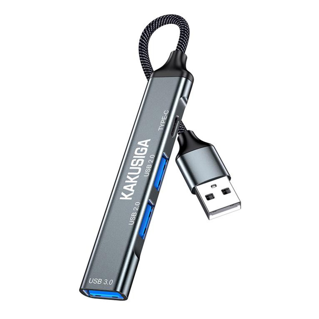 KAKUSIGA USB hub KSC-1417, 4x θυρών, USB 3.0, 5Gbps, USB-C σύνδεση, γκρι