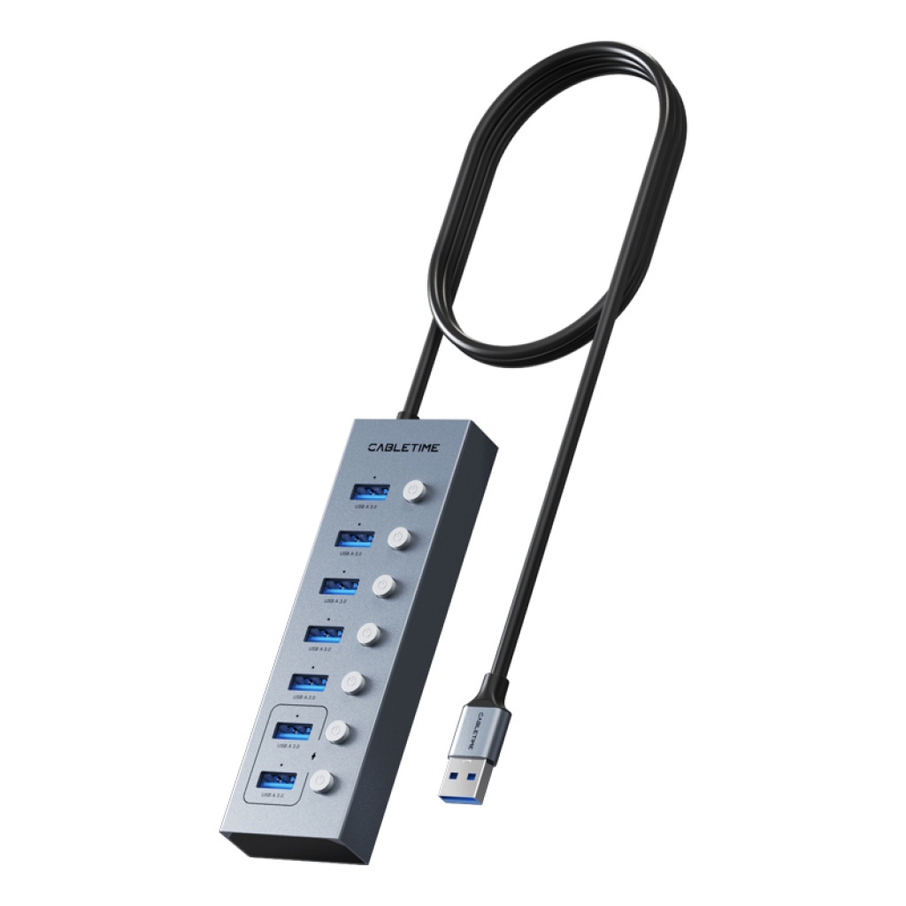 CABLETIME USB hub CT-HUBU7-AG, 7x θυρών, 5Gbps, USB σύνδεση, 1m, γκρι