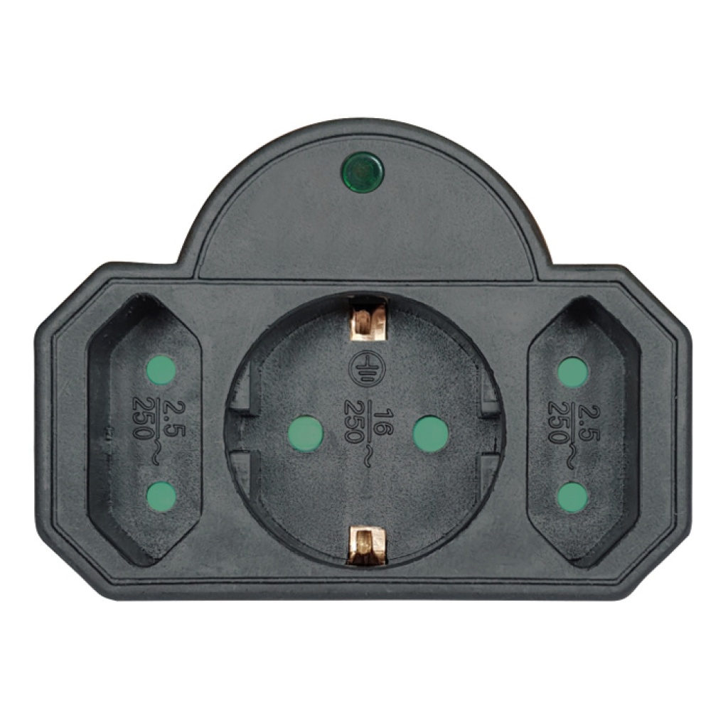 POWERTECH αντάπτορας ρεύματος PT-817 με προστασία υπέρτασης, 1x schuko, 2x euro, 16A, μαύρος