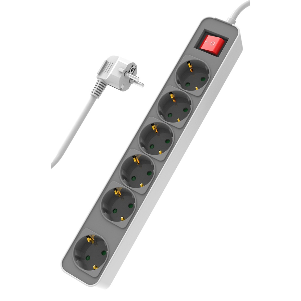 POWERTECH πολύπριζο ασφαλείας PT-1058, 6x schuko, 16A, 1.4m, λευκό