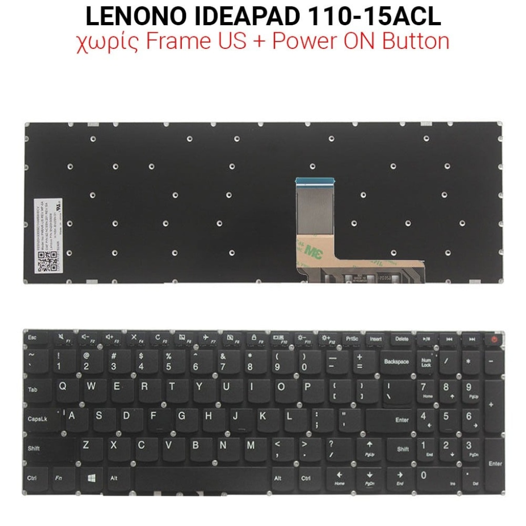 Πληκτρολόγιο LENONO IDEAPAD 110-15ACL NO FRAME US + POWER ON BUTTON