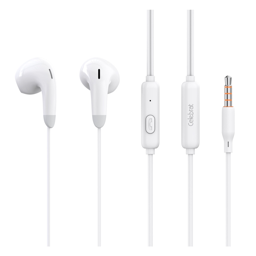 CELEBRAT earphones με μικρόφωνο G26, 3.5mm σύνδεση, Φ10mm, 1.2m, λευκά