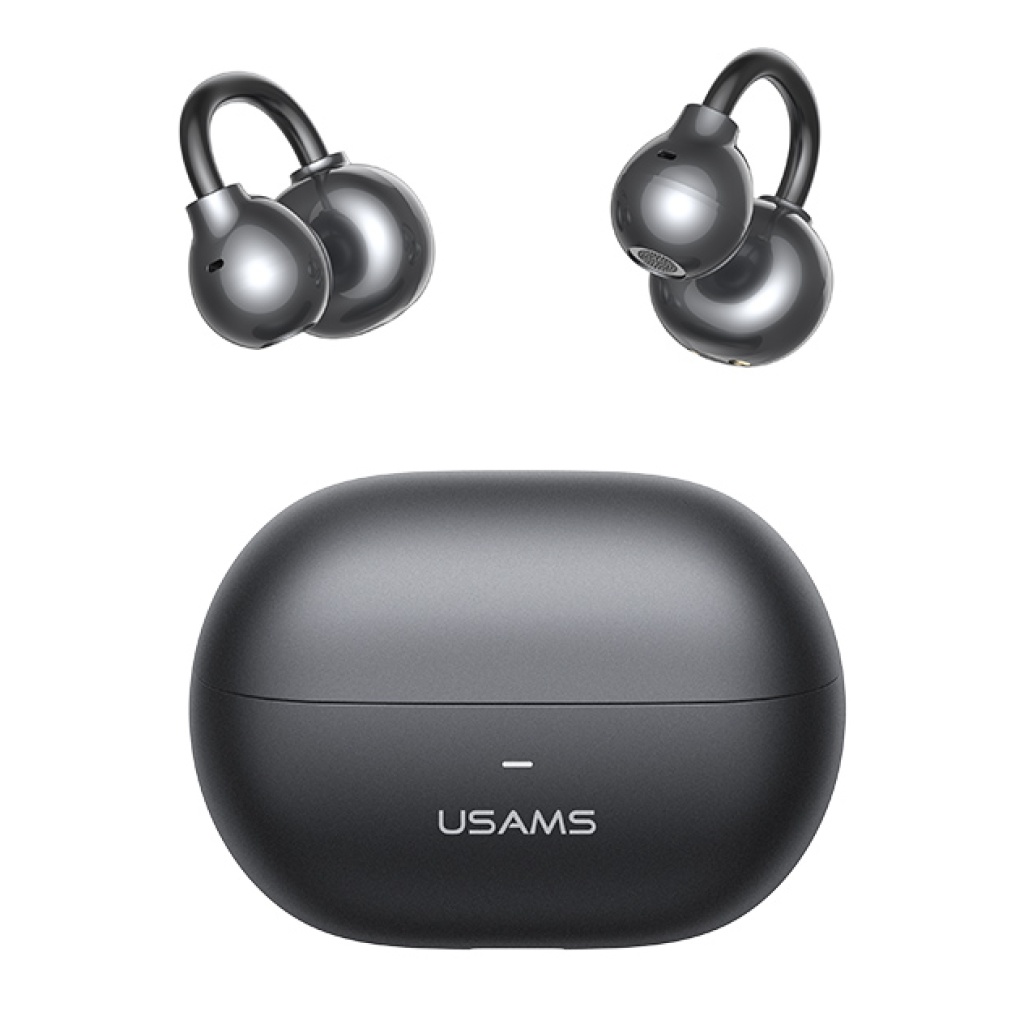 USAMS earphones με θήκη φόρτισης Echo R02, OWS, Φ11mm, 50/300mAh, μαύρα
