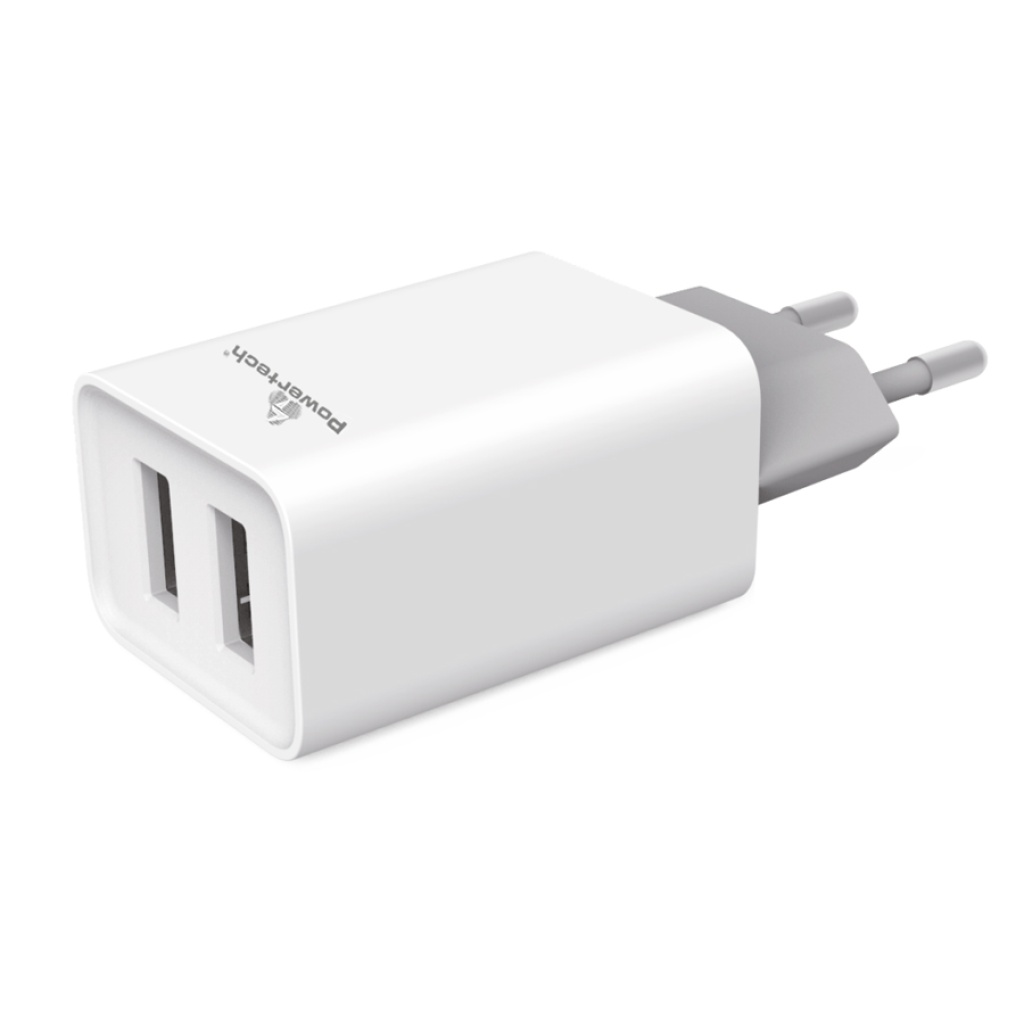 POWERTECH φορτιστής τοίχου PT-778, 2x USB, 2.1A, λευκός