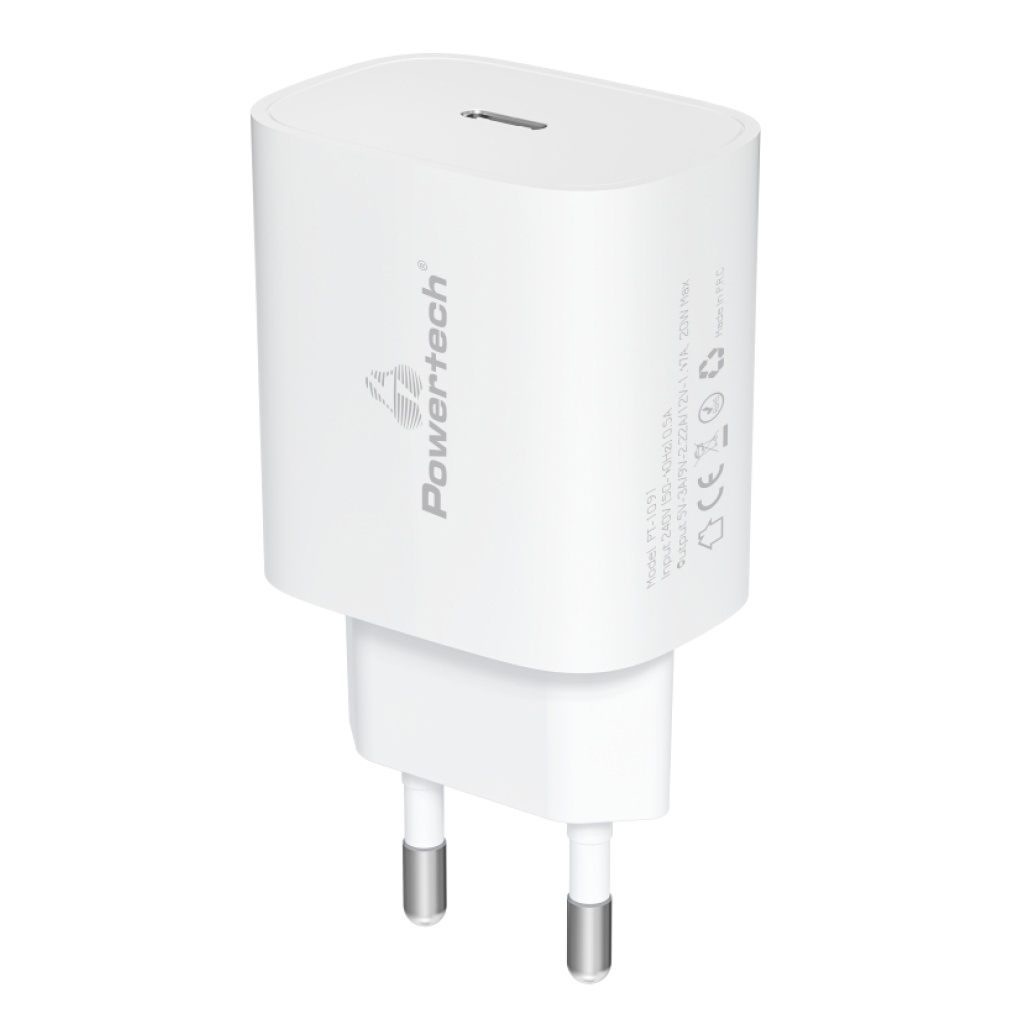 POWERTECH φορτιστής τοίχου PT-1091, USB-C, PD 20W, λευκός