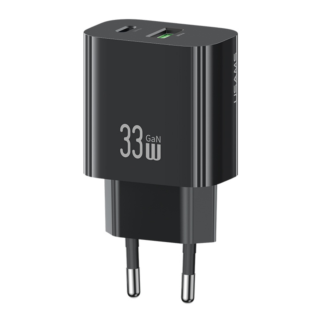 USAMS φορτιστής τοίχου CC317, USB & USB-C, 33W, GaN, μαύρος
