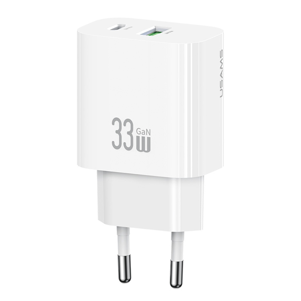 USAMS φορτιστής τοίχου CC317, USB & USB-C, 33W, GaN, λευκός