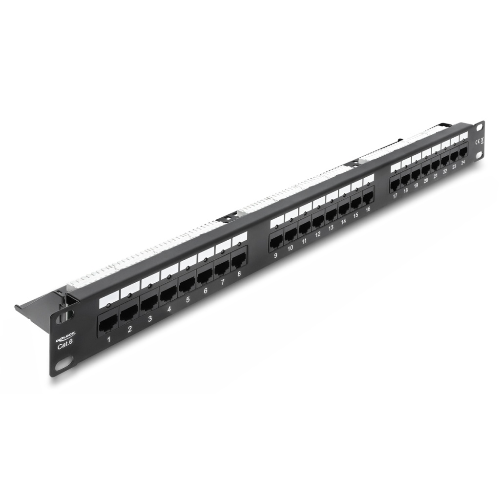 DELOCK patch panel 43295, 19″/1U, CAT 6, 24x coupler RJ45 ports, μαύρο