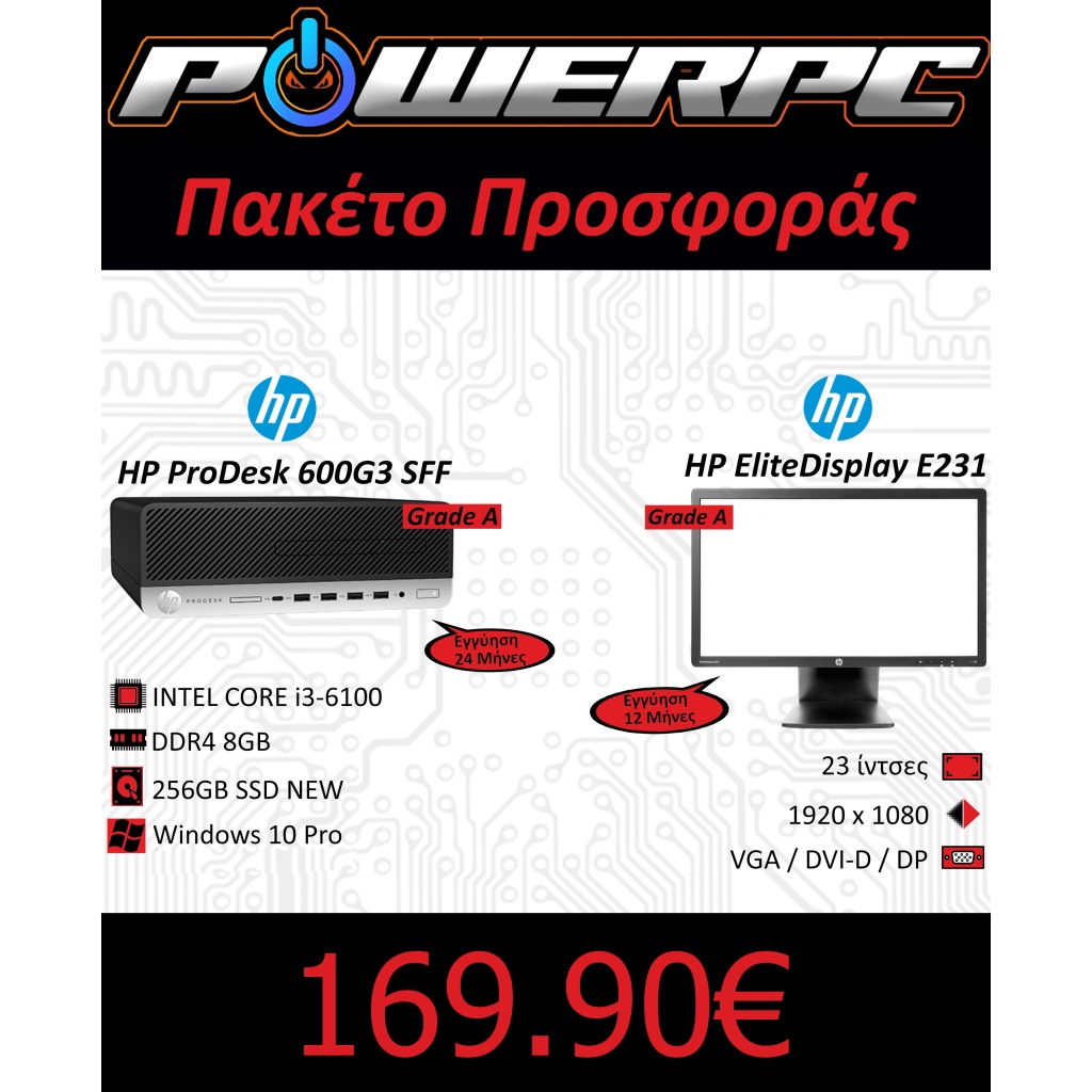 Bundle PC, HP ProDesk 600 G3 & HP EliteDisplay E231 TN Monitor 23″