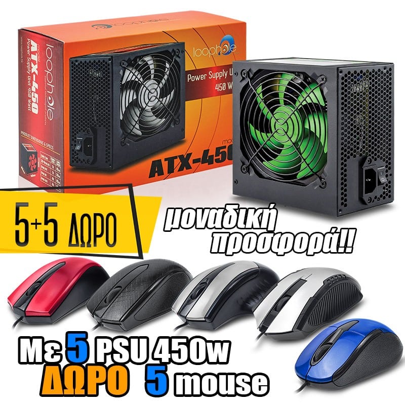 5 PSU Loophole 450 Watt + 5 Ποντίκια ΔΩΡΟ