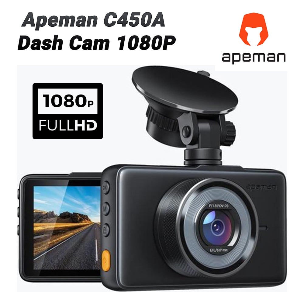 Κάμερα DVR αυτοκινήτου C450A της εταιρείας Apeman, με δυνατότητα καταγραφής βίντεο ανάλυσης 1080P. Στηρίζεται στο παρμπρίζ για πιο σταθερό κράτημα στους κραδασμούς του αυτοκινήτου. Διαθέτει οθόνη 3 ιντσών για ευκολία στην παρακολούθηση της βιντεοσκόπησης των διαδρομών. Παράλληλα τροφοδοτείται με καλώδιο από την υποδοχή του αναπτήρα του αυτοκινήτου.