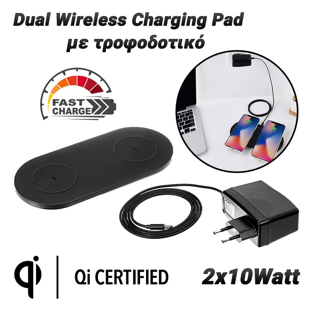 Πιστοποιημένη ασύρματη φόρτιση Qi Dual Pad με προσαρμογέα τροφοδοσίας ACΔιατηρήστε το τηλέφωνό σας φορτισμένο και σε κοντινή απόσταση με το ADual Wireless Charging Pad Qi-Certified 20W. Τοποθετήστε έως και 2 τηλέφωνα συμβατά με Qi στην επιφάνεια της συσκευής και φορτίστε τα αστραπιαία, αξιόπιστα και χωρίς την ταλαιπωρία των καλωδίων.