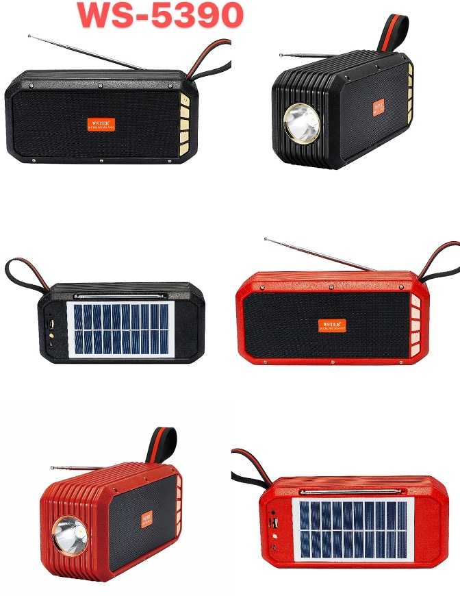 Ασύρματο, επαναφορτιζόμενο ηχείο Bluetooth WS5390 με καθαρό στερεοφωνικό ήχο. Διαθέτει εργονομικό σχεδιασμό και πρακτική λαβή μεταφοράς ενώ διαθέτει και πλαϊνό φακό LED. Διαθέτει, επίσης, ηλιακό πάνελ φόρτισης για έξτρα αυτονομία μπαταρίας. Ιδανικό για χρήση σε εξωτερικές δραστηριότητες.