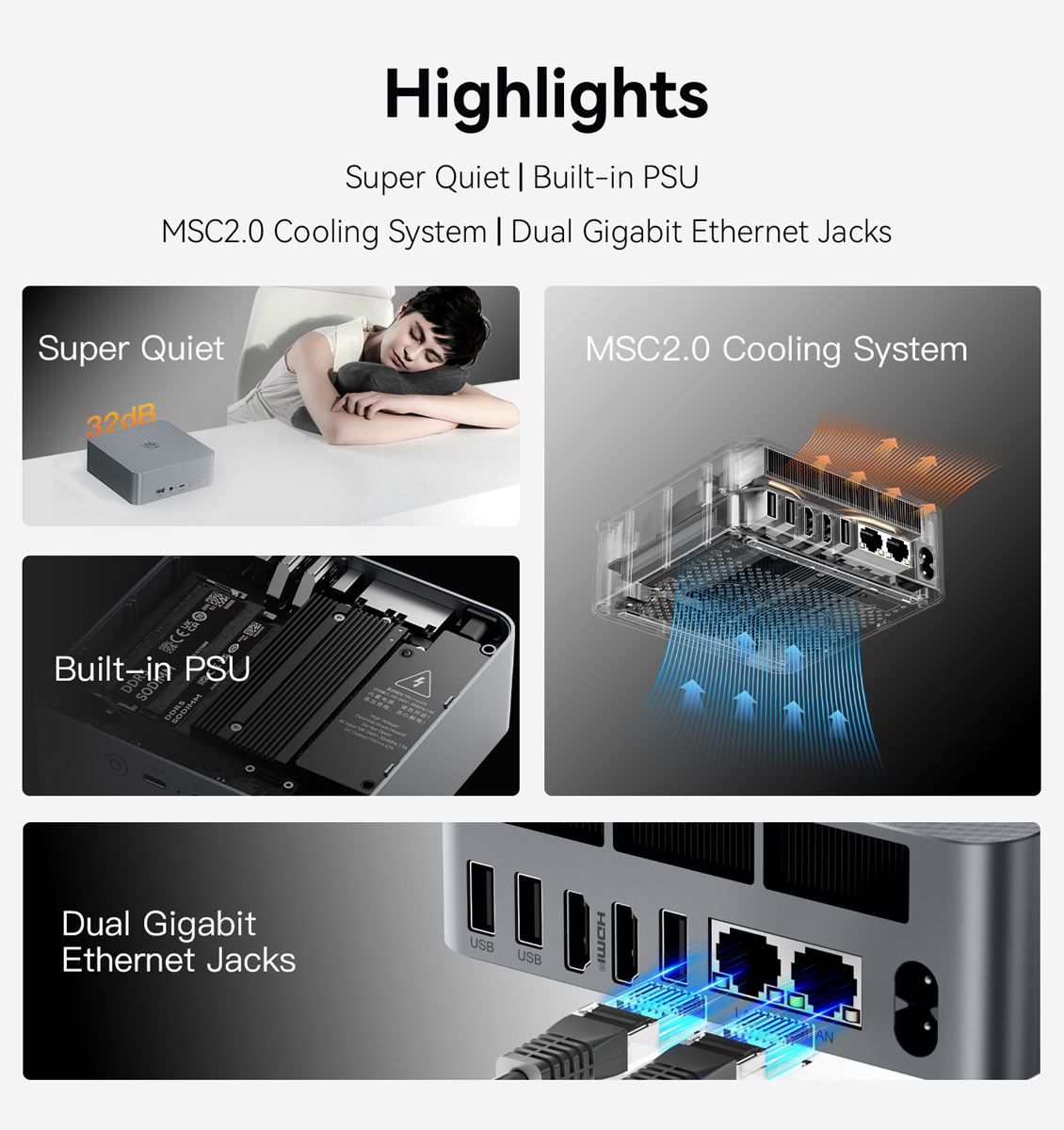 -Cooling: MSC 2.0 – Cooling System, Heat Pipe + Heat Dissipation Fins + Silent Fan + SSD Heatsink