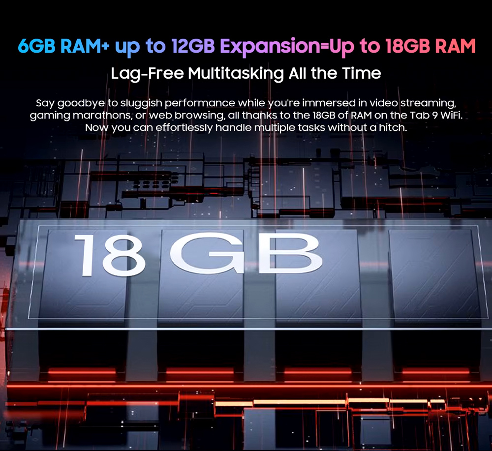 Με 6GB (+12GB virtual) RAM και 256GB ROM για να αποθηκεύετε τα αγαπημένα σας αρχεία, φωτογραφίες και βίντεο. Επιπλέον, προσφέρει την δυνατότητα να επεκτείνετε τον χώρο αποθήκευσης του tablet με κάρτα micro SD έως 1TB.