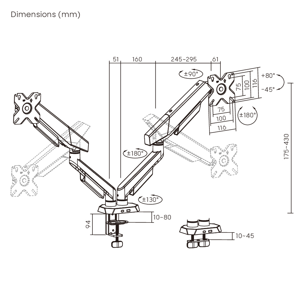 -πάχος επιφάνειας εργασίας: clamp: 10~80mm, grommet: 10~45mm