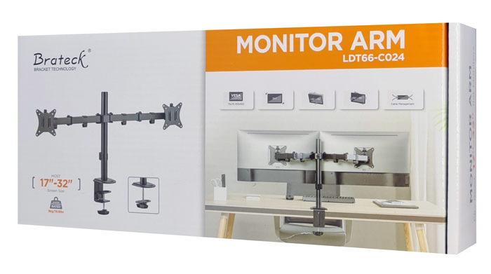 BRATECK βάση γραφείου για 2x οθόνες LDT66-C024, 17-32″, έως 9kg
