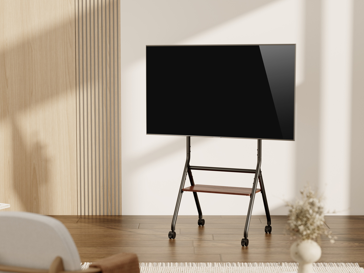 Ροδάκια για εύκολη μετακίνηση της τηλεόρασης, με μηχανισμό κλειδώματος που εξασφαλίζει τη σταθερότητα όταν απαιτείται.