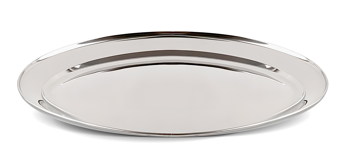 Πιατέλα σερβιρίσματος από ανοξείδωτο ατσάλι, ανθεκτική στην καθημερινή χρήση.