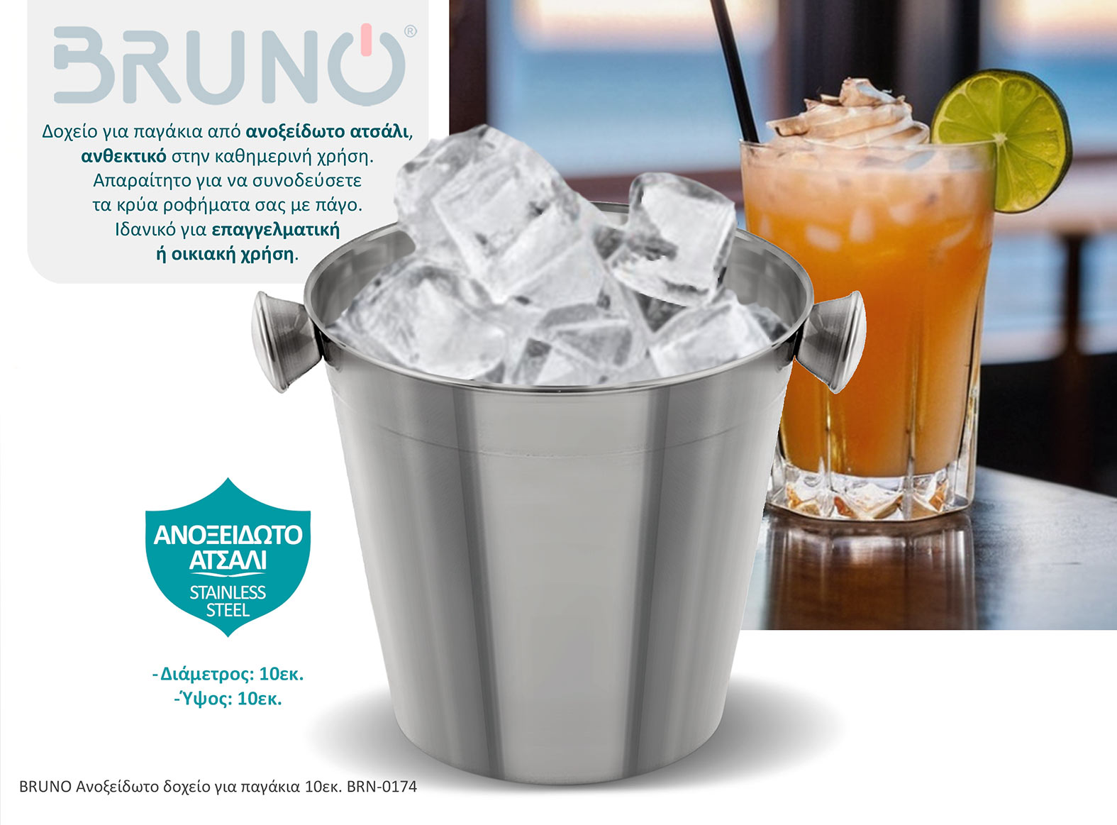 BRUNO ανοξείδωτο δοχείο για παγάκια BRN-0174, 10εκ.