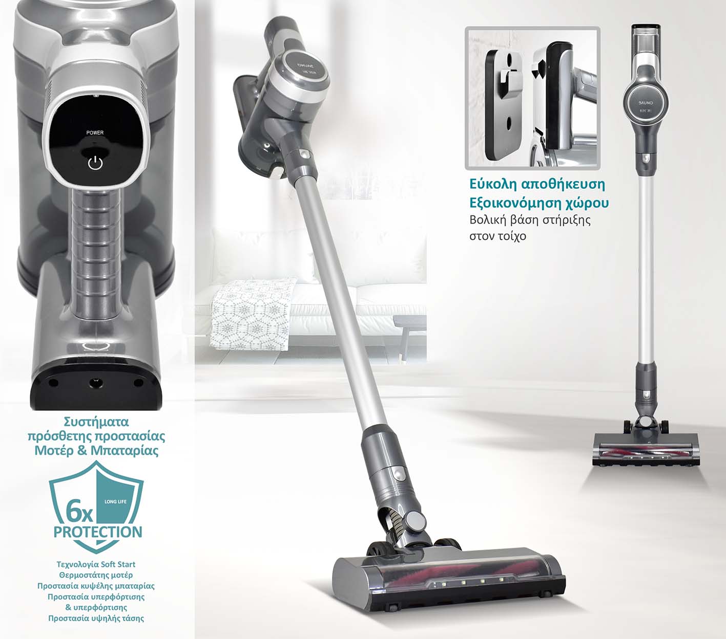 -Αξεσουάρ: 2 σε 1 Βουρτσάκι επίπλων-ακροφύσιο στενών κοιλοτήτων, Μακρύ ακροφύσιο στενών κοιλοτήτων, -Βάση στήριξης στον τοίχο, φορτιστής