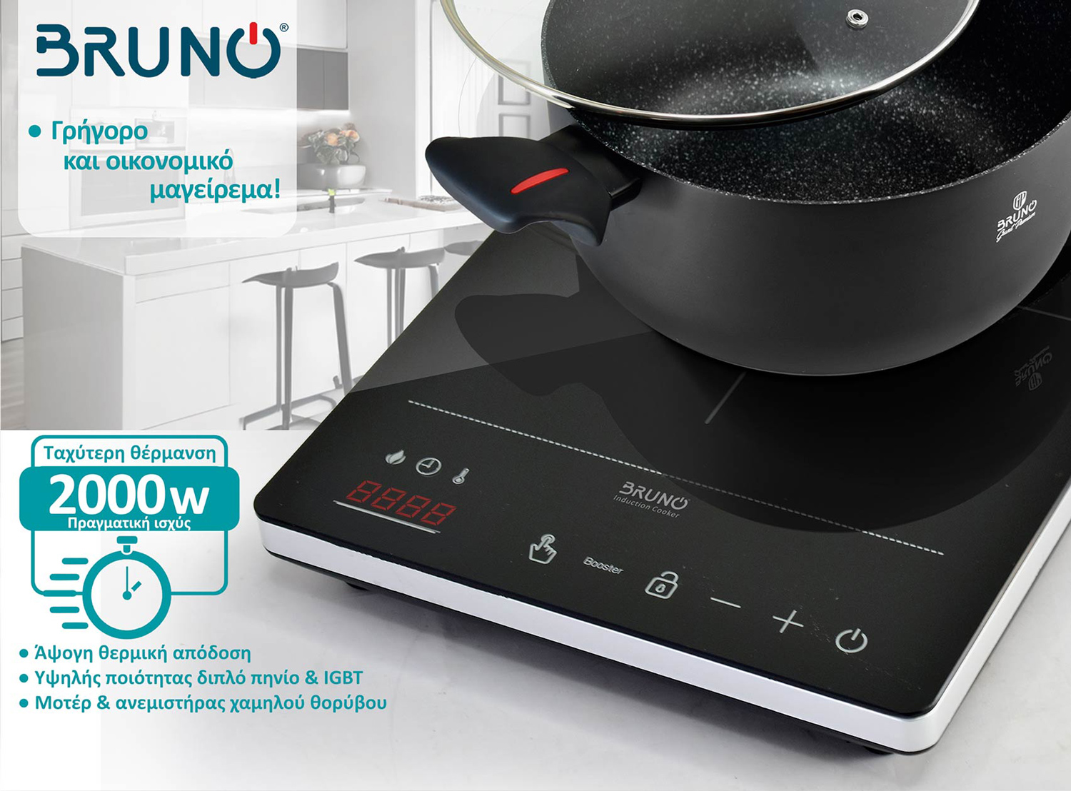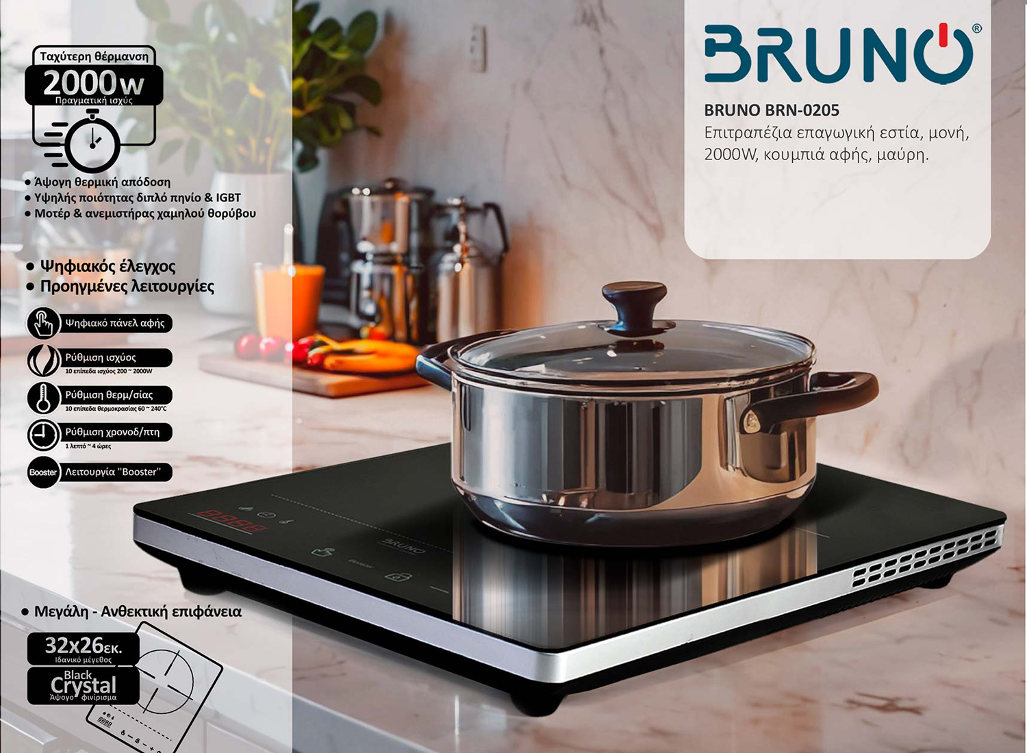 Η επιτραπέζια επαγωγική εστία BRUNO BRN-0205 είναι ιδανική για κάθε κουζίνα, για μικρά ή μεγάλα νοικοκυριά και οικογένειες. Προσφέρει έναν εναλλακτικό τρόπο για άνετο καθημερινό μαγείρεμα και συνδυάζει πρακτικότητα, οικονομία, εξοικονόμηση χρόνου και εύκολο καθάρισμα.