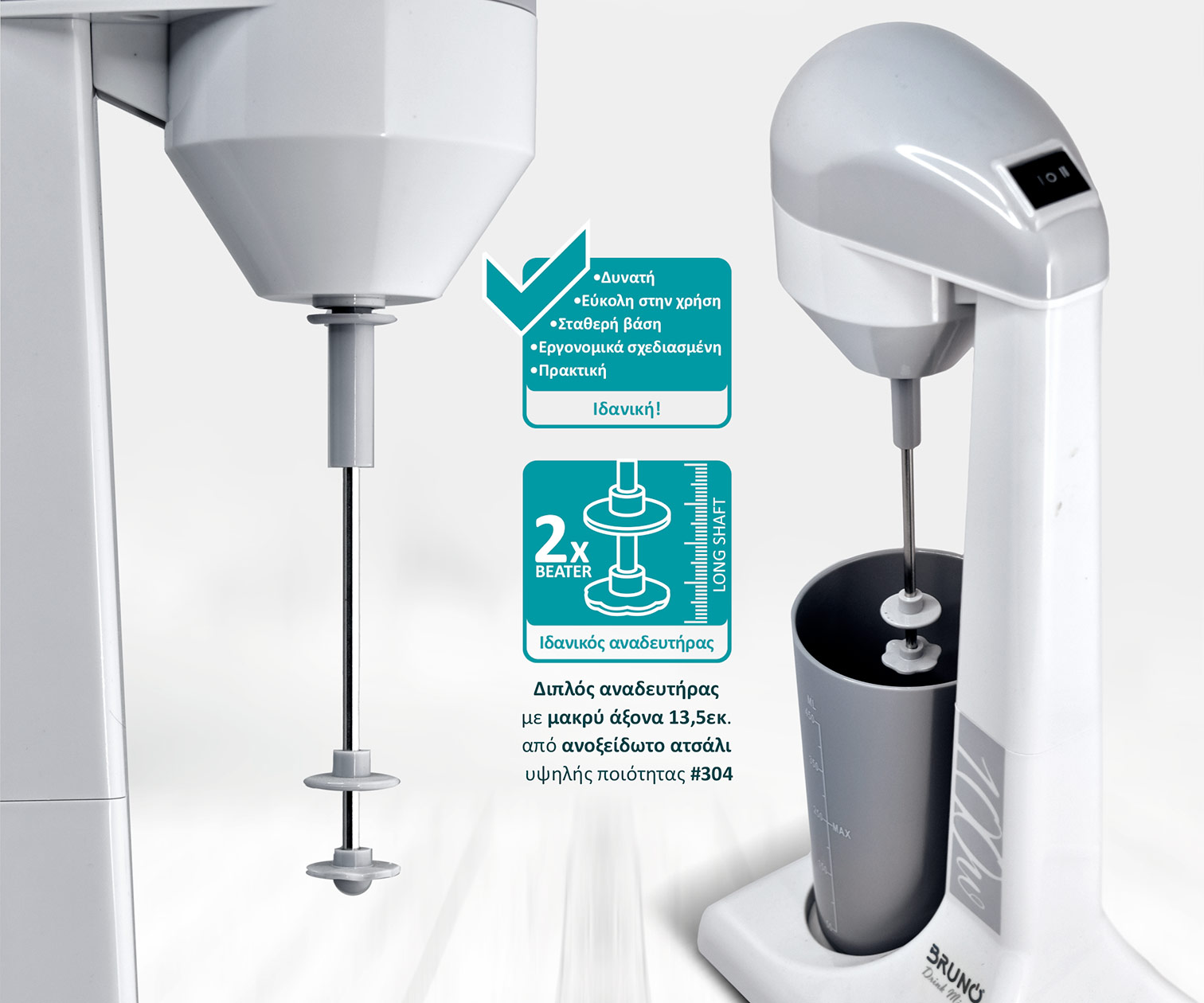 Ιδανική για την ετοιμασία των κλασικών αγαπημένων μας ροφημάτων, όπως ο Freddo, ο φραπές, ο στιγμιαίος ζεστός καφές, το κρύο αφρόγαλα για Freddo cappuccino, ροφήματα σοκολάτας, κρεμώδη milkshake κτλ. και την δημιουργία dressing για σαλάτες, αβγολέμονο κ.α.!