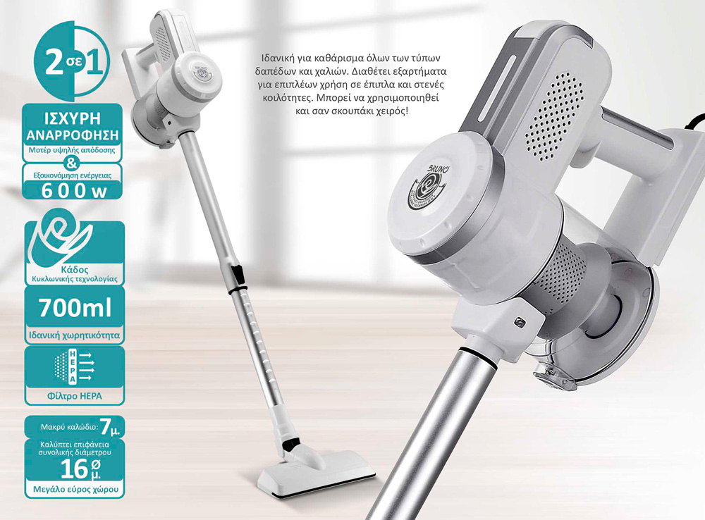 Η ηλεκτρική σκούπα 2 σε 1, BRN-0133 της Bruno, είναι ιδανική για τοπικό ή γενικό καθάρισμα του σπιτιού, γρήγορα και εύκολα!