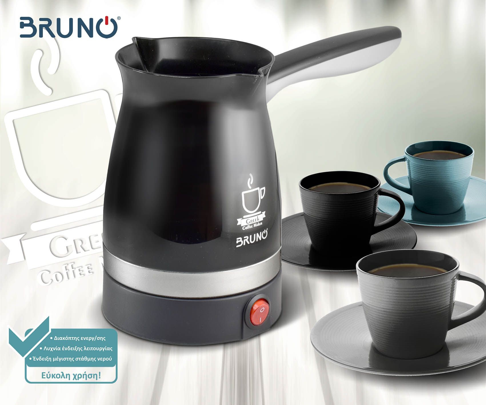 Το ηλεκτρικό μπρίκι BRUNO BRN-0187 είναι ιδανικό για εύκολη και γρήγορη ετοιμασία του αγαπημένου σας Ελληνικού καφέ καθώς και για το ζέσταμα νερού για άλλα ζεστά ροφήματα, έτοιμες σούπες, κρέμες κτλ.