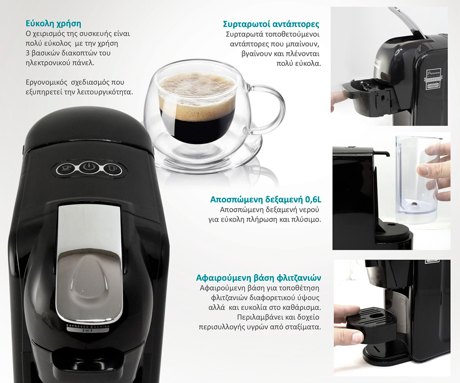 Τύπος καφέ: αλεσμένος καφές & 2 ειδών κάψουλες (Nespresso, Dolce Gusto)