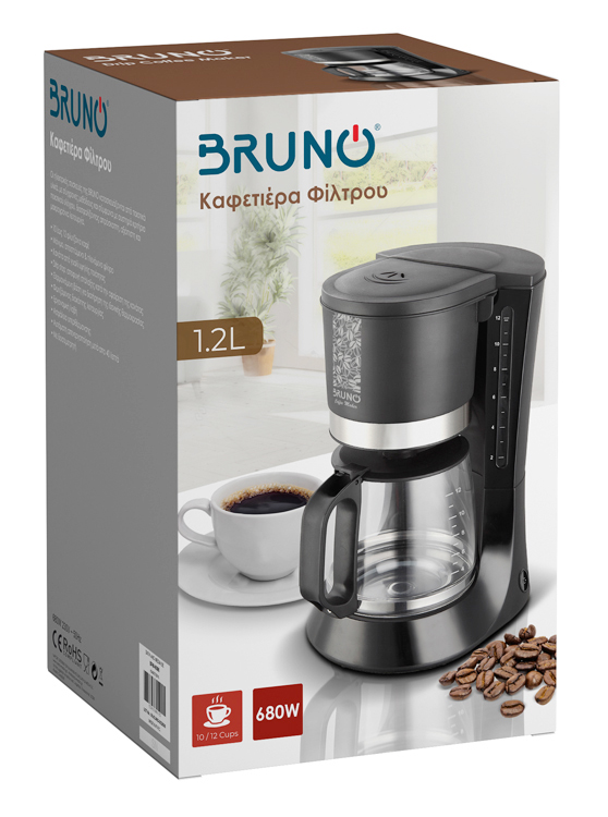 Καφετιέρα φίλτρου εξαιρετικής απόδοσης της Bruno με ισχύ 680W και χωρητικότητα 1,2lt.