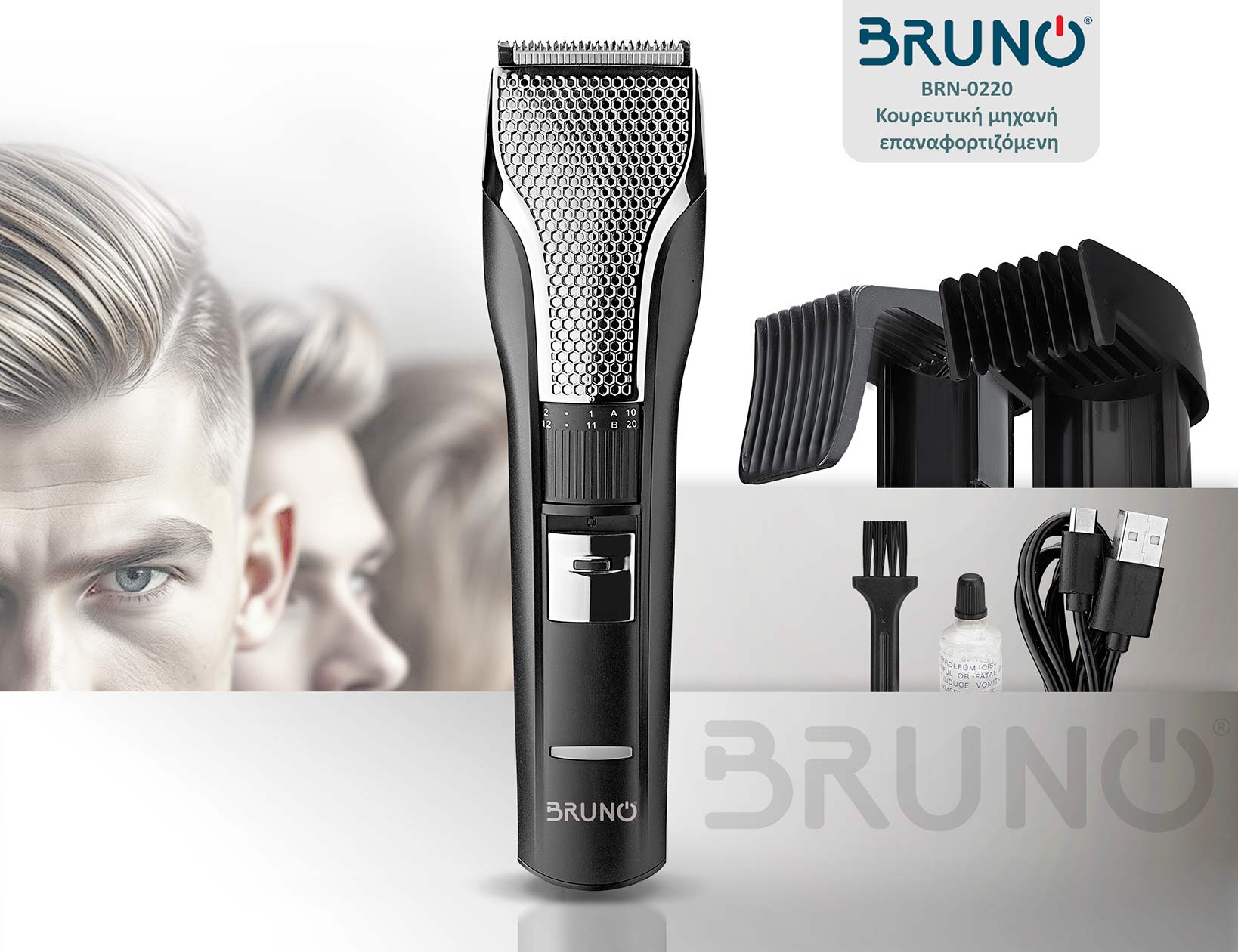 Η επαναφορτιζόμενη κουρευτική μηχανή BRUNO BRN-0220, είναι ιδανική για τριμάρισμα ή κούρεμα σε μαλλιά και γένια.