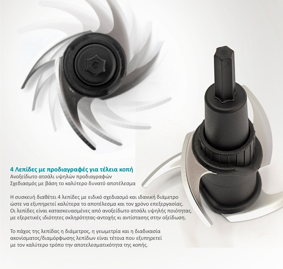 -4 λεπίδες κατασκευασμένες από ανοξείδωτο ατσάλι υψηλής αντοχής