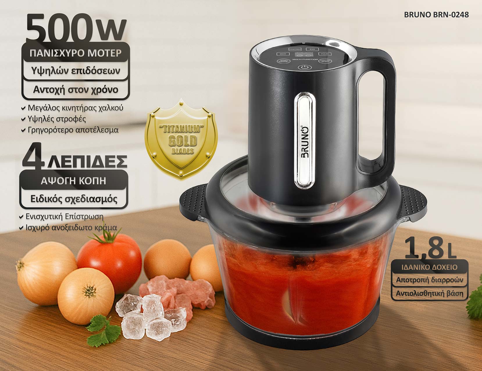 BRUNO πολυκόπτης προηγμένων λειτουργιών BRN-0248, ψηφιακός, 500W, 1.8L, 4 λεπίδες, μαύρος