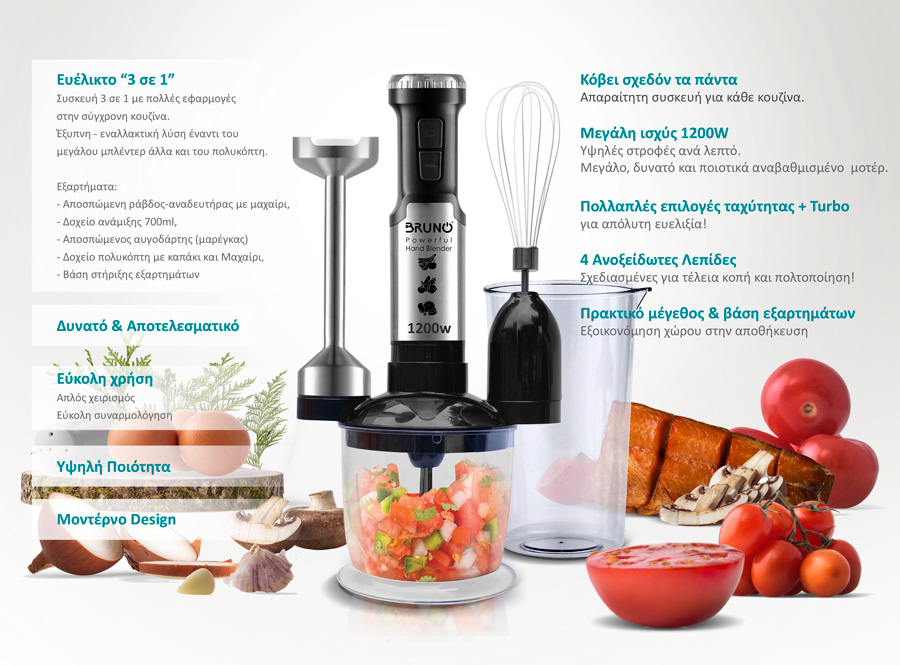 BRUNO ραβδομπλέντερ 3 σε 1 BRN-0093, ρυθμιζόμενη ταχύτητα, 1200W