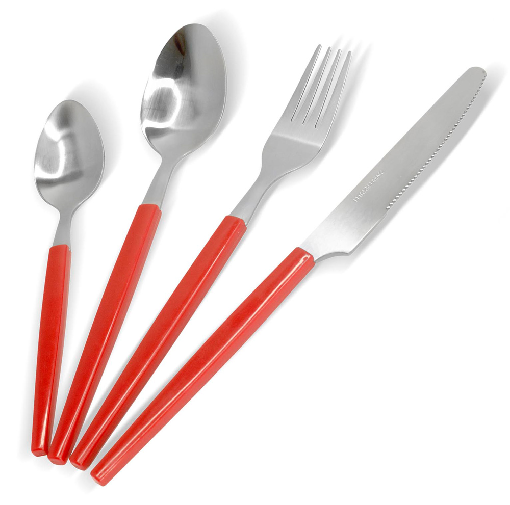 BRUNO σετ μαχαιροπίρουνα ανοξείδωτα Accorto, κόκκινο, 16τμχ