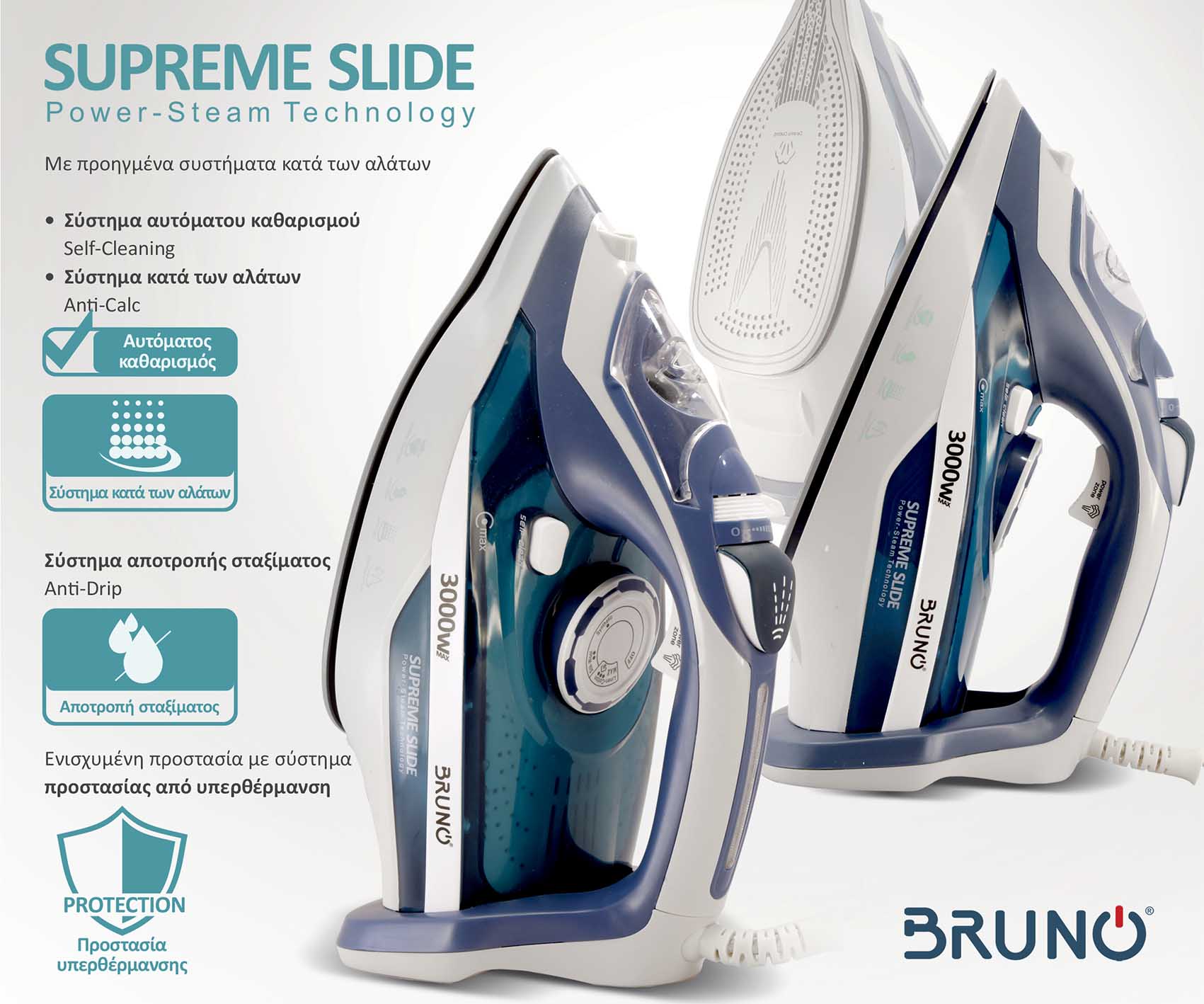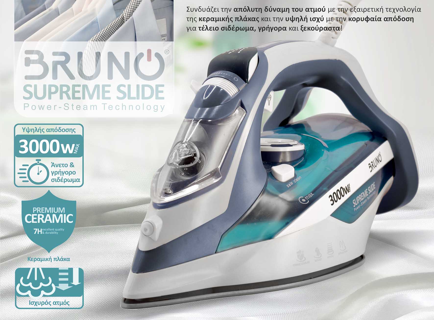 BRUNO σίδερο ατμού Supreme Slide BRN-0146 με κεραμική πλάκα, 3000W
