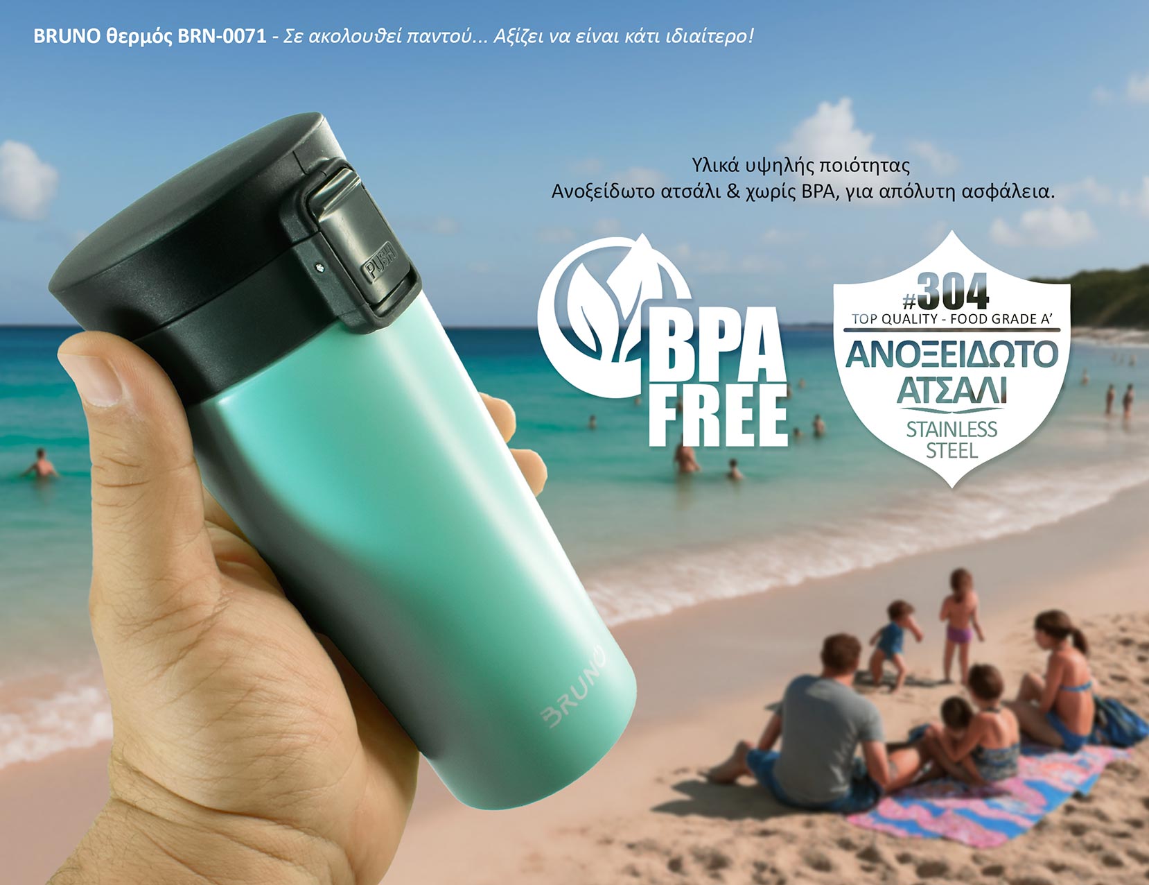 Θερμός της Bruno, κατασκευασμένος από υψηλής ποιότητας υλικά, απαλλαγμένος από BPA και με προσεγμένη, εργονομική σχεδίαση.