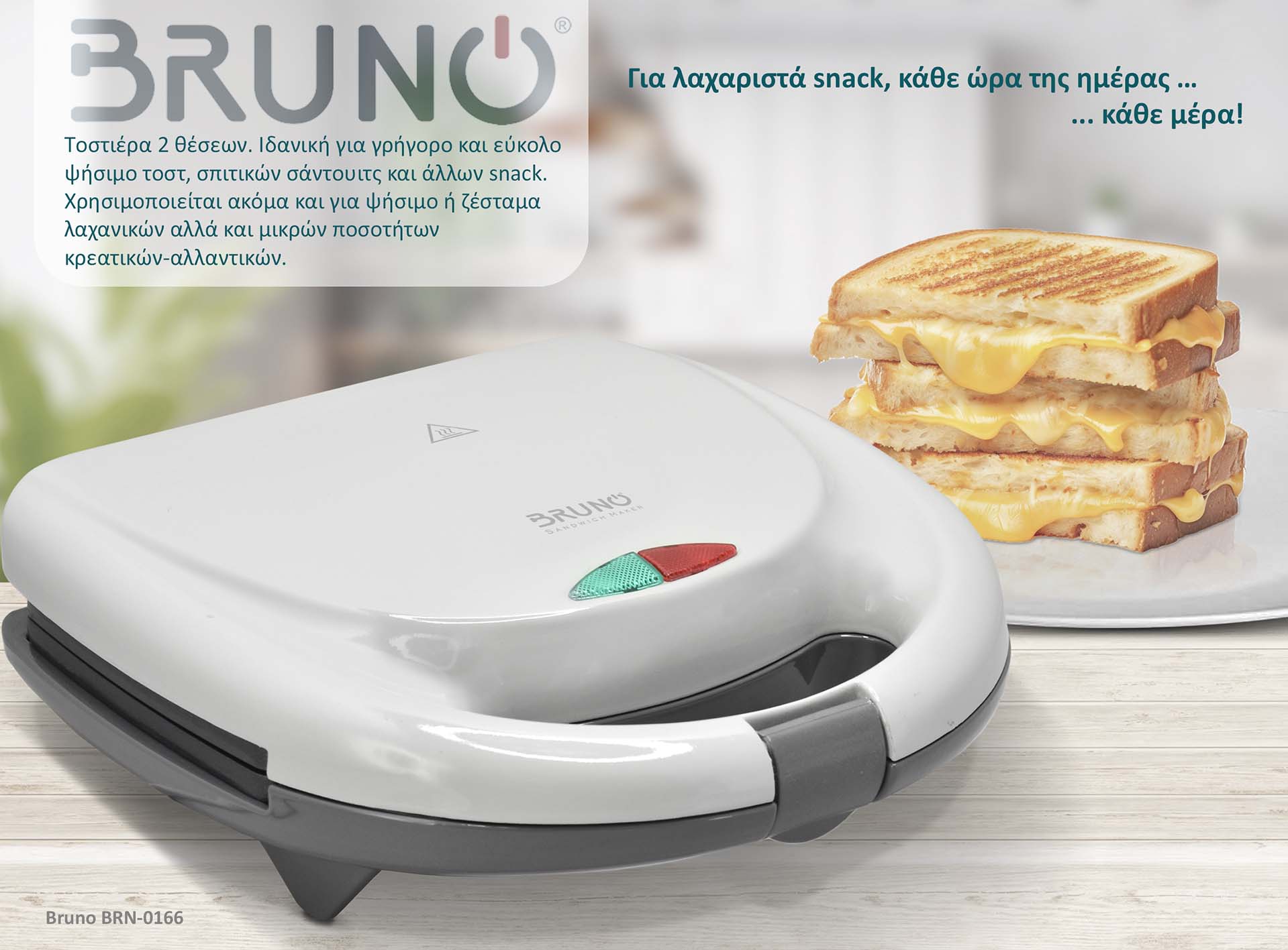 Η τοστιέρα 2 θέσεων BRN-0166 είναι ιδανική για γρήγορο και εύκολο ψήσιμο τοστ, σπιτικών σάντουιτς και άλλων snack σε σύντομο χρόνο.