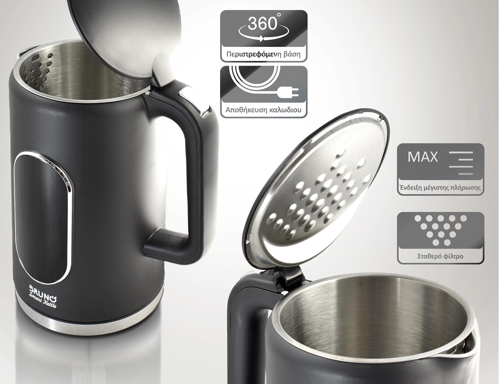 BRUNO βραστήρας νερού προηγμένων λειτουργιών BRN-0245, ψηφιακός, με διπλό τοίχωμα, 1.7L, 2200W, μαύρος