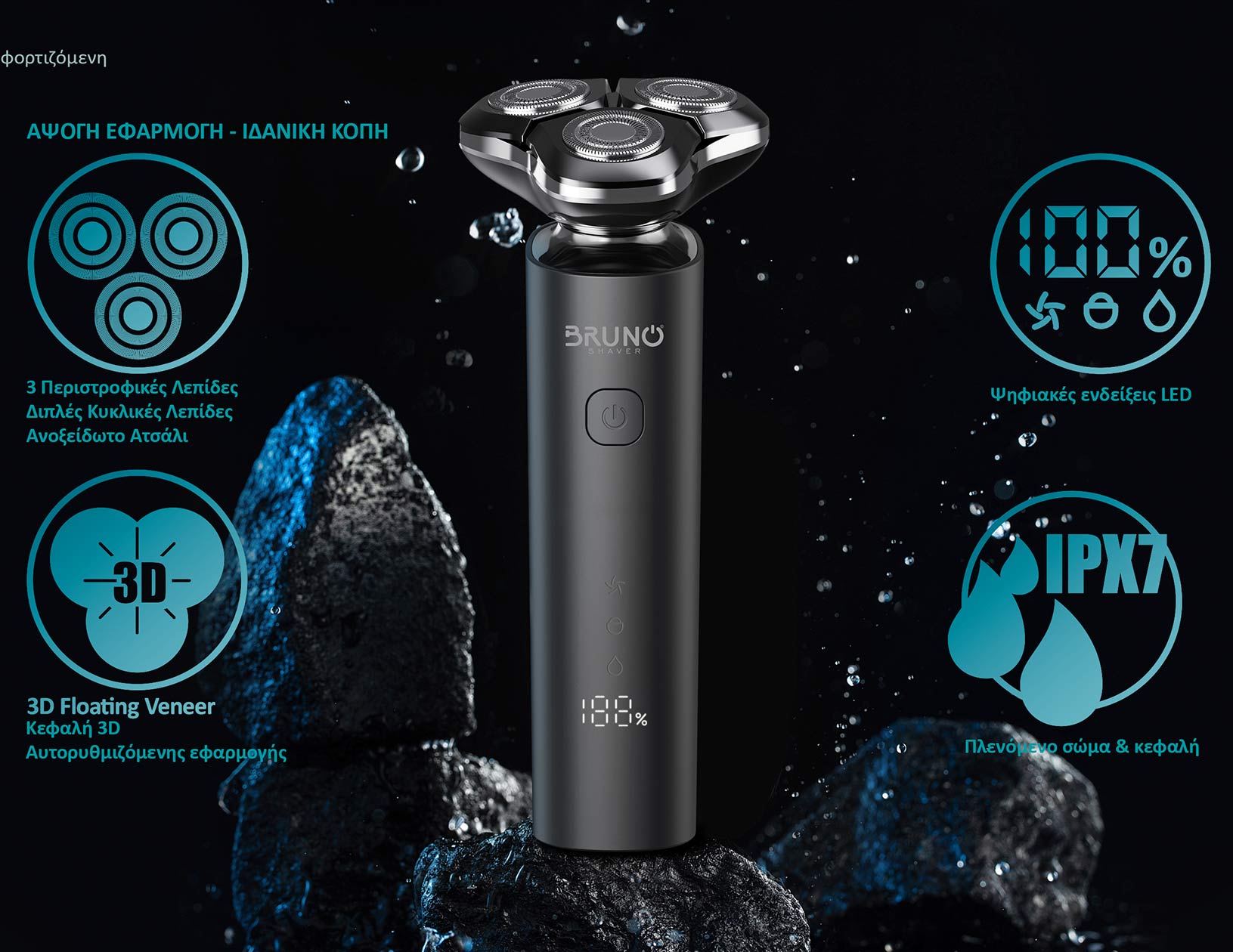 WET & DRY κατάλληλη και για βρεγμένα γένια. Αποσπώμενη πλενόμενη κεφαλή και σώμα IPX7.