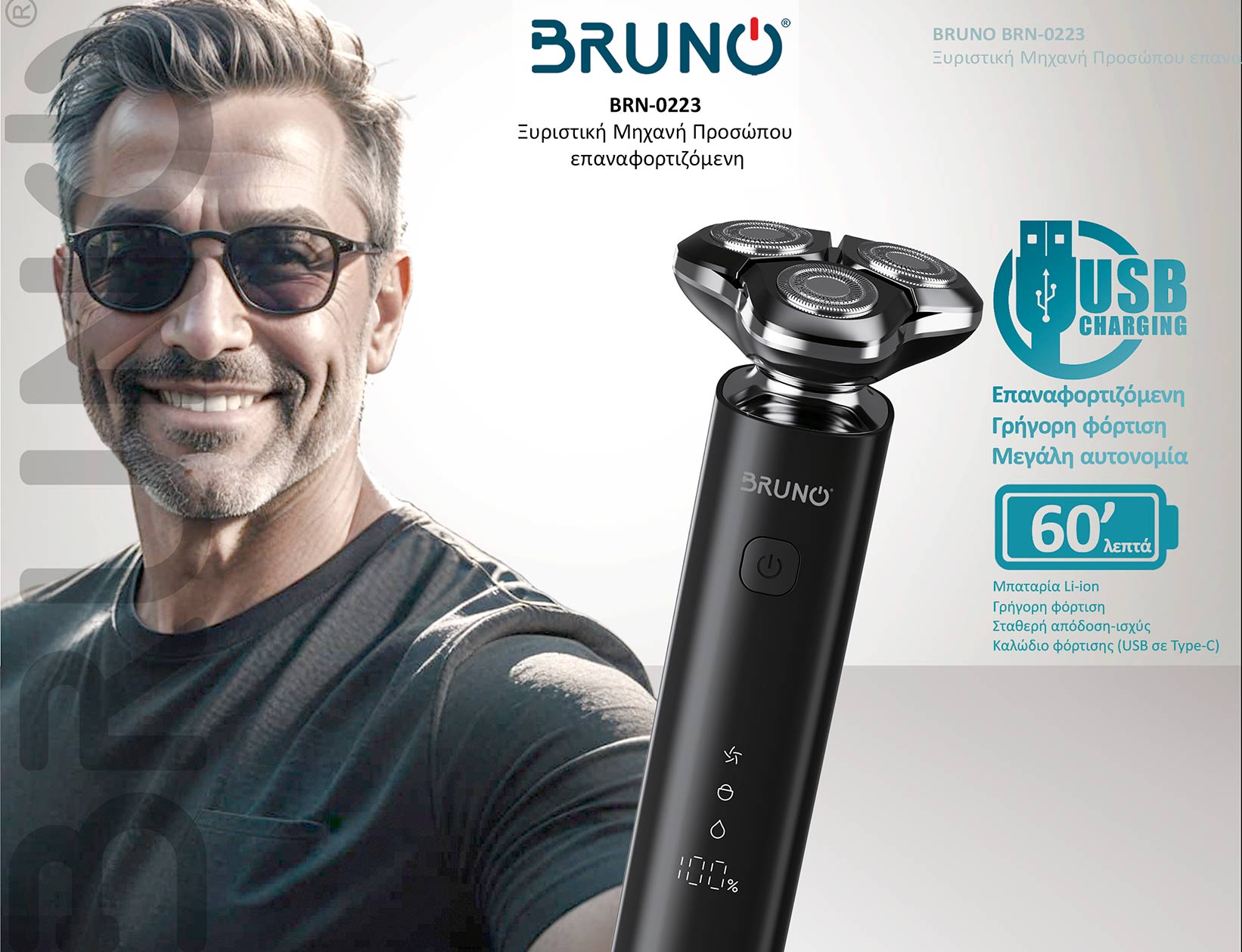 Η επαναφορτιζόμενη ξυριστική μηχανή προσώπου BRUNO BRN-0223, είναι η απόλυτη λύση για την καθημερινή περιποίηση του άνδρα.